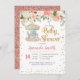 Pink Carousel Horse Baby Shower Card with beautiful floral and gold confetti.