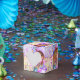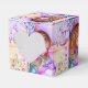 Square 2X2 baby favour box with peekaboo heart design, featuring Carousel Dreams cd cover art, great for baby shower favours, or any baby party