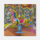 A close up photograph of colorful horses on a merry-go-round printed on a square fridge magnet.