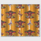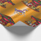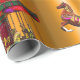A colourful, vintage carnival themed wrapping paper with prancing carousel horses and a merry-go-round.
