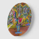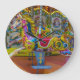 A beautiful photograph of colourful carousel horses printed on a round wall clock.
