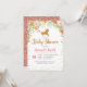 Carousel Horse Baby Shower invitation with beautiful rose gold floral and gold confetti.