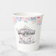 These whimsical paper cups feature a carousel with a floral top border. Illustration colours include an array of pastels in pink, blue, red, and green. See our Carousel Wonderland Pink Collection for matching accessories.