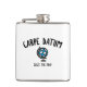 The flask itself is fine. It’s a cheap flask, obviously bought in bulk, however am prepared to overlook that. Given that it is a personalized item, I would have liked to have seen gift boxing instead of the generic packaging. Terrible printing, and/or quality. It’s a cheap, tacky vinyl. It is not cut straight and is also applied in a way that it is overhanging the bottom, causing the glue to catch on items and it will eventually roll and tear, damaging the wrap.