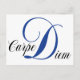 Send a motivational message with this Carpe Diem postcard. This text design is in a flowing script font in colors of black and deep blue.