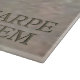 * graphic: captures the look of letters chiseled into stone. saying (ancient Roman/Latin) meaning: Seize the Day, enjoy the moment, don't waste time