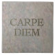 * graphic: captures the look of letters chiseled into stone. saying (ancient Roman/Latin) meaning: Seize the Day, enjoy the moment, don't waste time