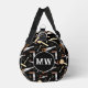 Unique carpenter duffel bag patterned with carpentry and woodworking tools. There's a monogram area at one end to add your own initials or text