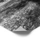 A dramatic black and white landscape of long tree shadows and white fluffy clouds has two birds of prey flying in the distance.