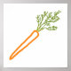A fun outline drawing of a single carrot with typical orange body and green foliage. For fans of carrots - humans AND rabbits!