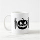 A spooky and minimalist Halloween-themed design featuring a carved pumpkin with a sinister, grinning face in the centre. The pumpkin's expression is eerie, with hollow eyes, a jagged mouth, and small nose holes. On either side of the pumpkin are two carrots, each stylised with a simple and clean outline, adding a unique vegetable twist to the Halloween theme. The design is in black, emphasizing the contrast and simplicity, perfect for Halloween decorations or apparel.