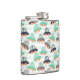 The flask itself is fine. It’s a cheap flask, obviously bought in bulk, however am prepared to overlook that. Given that it is a personalized item, I would have liked to have seen gift boxing instead of the generic packaging. Terrible printing, and/or quality. It’s a cheap, tacky vinyl. It is not cut straight and is also applied in a way that it is overhanging the bottom, causing the glue to catch on items and it will eventually roll and tear, damaging the wrap.