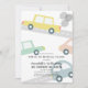This cute, retro and modern drive-by/drive thru/car parade birthday invitation features a white background with colourful cars with grey balloons. The reverse side features a light yellow background with car patterns. Personalise for your needs. You can find more matching products at my store.