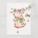 Carte Noël, rouge-gorge de Noël sur son nichoir. Rouge-gorge neige.