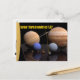 Une carte postale originale qui fera surement sourire votre facteur, et votre destinataire. Les planètes sont dessinées à l'échelle, ainsi que la courbure du Soleil (sur la gauche de la carte). Jupiter est la plus grande planète de notre système solaire, avec un diamètre 11 fois plus grand que celui de la Terre.