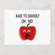 Funny image of a red cartoon apple. Back to school. Oh, no!