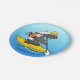 Cartoon badger in a kayak paper plate