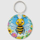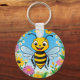 Happy Smiling Cartoon Bee flying in the meadow with colourful flowers