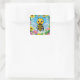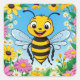 Cartoon Bee Colourful Flowers Square Sticker