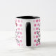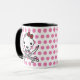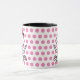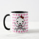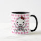 Drink your coffee from this classic mug with this cute and scary cartoon of a Jolly Kitty Pirate Skull and Bones. The background is a pink polka dot.