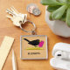 Cartoon Blackbird Eating Ice Cream | Add Your Name Key Ring