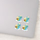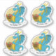 Set of four cut vinyl stickers with an illustration of a cute blue dragon guarding a treasure; fantasy animal cartoon motives for kids; with custom text template for your child's name or custom message