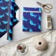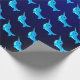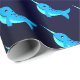 Cartoon blue narwhals pattern on Navy Blue Wrapping Paper