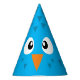 Bluebird face costume party hat featuring a light blue with a feather print and orange beak for a young child's birthday party. It is effortlessly adorable and ready to bring your celebration to the next level.