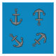 An illustration of a set of cartoon boat anchor in grey and black colour. Do you love sailing, captain of a ship and the deep blue ocean? This anchor symbol pattern design is a gift idea for sailor, nautical and marine design lovers.