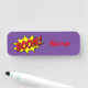 This badge looks professional and it's in keeping with my branding. The magnetic attachment is strong and stays in place all day. The quality of the materials and the colors were exactly as pictured. I couldn't be happier! The printing is clear and easy to read