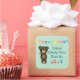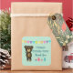 A thank you sticker for a birthday party or other special occasion. A simple illustration of a cartoon brown bear holding a yellow daisy. Colourful bunting banner and some gift boxes and cupcakes also add to th festive feeling of this design. Personalise with your own text.