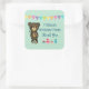 Cartoon Brown Bear with Yellow Flower Party Thanks Square Sticker