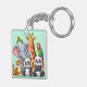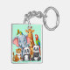 This acrylic keychain is shown with a cartoon animal buddies print.