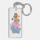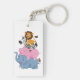 This acrylic keychain is shown with a cartoon animal buddies print.