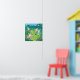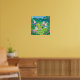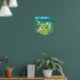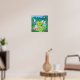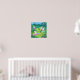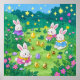 Cartoon bunnies hiding eggs in a garden poster