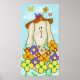 Cartoon Bunny with Flowers Poster