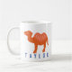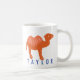Sip your favourite hot beverage in style with this cute personalised camel mug. It features a simple, cartoon style illustration of a bactrian camel or a two-humped camel in orange and your name in blue below.