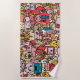 Cartoon Caracter Hand Drawn Toss Pattern Kids Beach Towel. Colourful pattern with different funny and fun hand-drawn characters. Great for kids and teens.