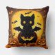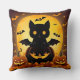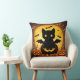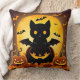 Cartoon Cat Bat and Pumpkins Under Full Moon Cushion