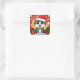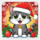 Cartoon Cat in Santa Hat With Christmas Decoration Square Sticker