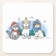 Cartoon Cats Singing Christmas Carols Square Paper Coaster