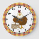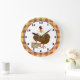 Not many Chicken Clocks out there. Most are Rooster Clocks. Our City Ordinance only allows a max of 6 chickens & no roosters. This Clock was spot on. Works & looks Great in our kitchen above the entryway. It's a "Keeper". The printing was high quality as expected. Got this model because too many other styles were too dark, making it difficult to see the clock hands & thus know the time. I would have liked a clear dome over everything thus making cleaning easier but that's OK as their is less glare the way it was made. It does have a good clear finish over the print for protection.