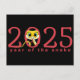 2025 is the year of the snake! Celebrate with this design featuring "2025" and a cute cartoon snake in the 0. On the back of the postcard is a snake, a red bag, and gold coins.