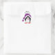A cool penguin wearing a big purple floppy Christmas hat and a little purple bow tie. The words can be changed as desired.