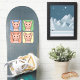 Cartoon clip art with four smiling pigs inside squares with different colours.