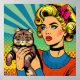 Cartoon Comic Pop Art Women Holding Cat Poster