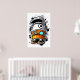 A cool alien robot boy in orange clothes and white helmet looking at you wondering what you are. This is a AI generated art.