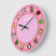 Cartoon Critters w/ Name Template Pink Large Clock