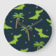 Cartoon Crocodiles: Alligator Palms Pattern. Large Clock