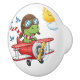 Cartoon Dinosaur Pilot Flying Red Airplane Ceramic Knob